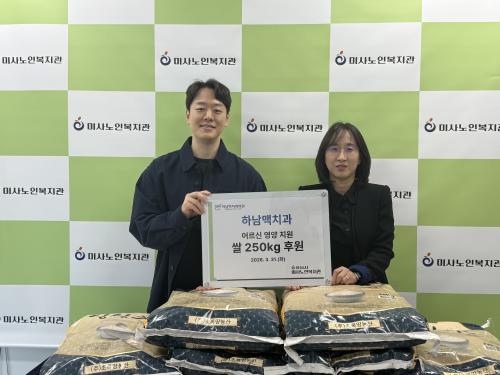 [½Åµ¿¾Æ¹æ¼Û Çϳ²½Ã=À̽ŵ¿±âÀÚ] Çϳ²½Ã¹Ì»ç³ëÀκ¹Áö°ü(°üÀå ±è±³½É)Àº 3¿ù 31ÀÏ º¹Áö°ü¿¡¼­ Çϳ²¸ÆÄ¡°ú¿Í ÇÔ²² ¾î¸£½ÅÀ» À§ÇÑ ½Ò 250kg Àü´Þ½ÄÀ» ÁøÇàÇß´Ù. À̹ø ÈÄ¿øÀº Çϳ²¸ÆÄ¡°ú¿¡¼­ 2026³â ½Å±Ô »çȸ°øÇå Ȱµ¿À¸·Î ±âȹÇÑ ¿¬°£ ½Ò 1,000kg Áö¿ø ÇÁ·ÎÁ§Æ®ÀÇ ÀÏ¡¦